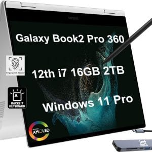 SAMSUNG Galaxy Book2 Pro 360 2-in-1 Business Laptop (15.6″ FHD AMOLED Touchscreen, Intel 12-Core i7-1260P, 16GB RAM, 2TB SSD, Active Stylus), Backlit, FP, IST USB-C Hub, Webcam, Win 11 Pro, Silver