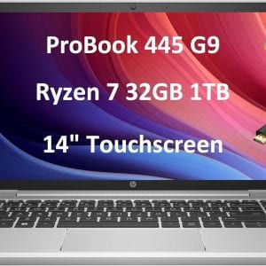 HP 2024 ProBook 445 G9 Business Laptop (14″ FHD Touchscreen, AMD Ryzen 7 5825U, 32GB RAM, 1TB SSD, 8-Core (Beats i7-1165G7)) Fingerprint, Webcam, Ethernet, Wolf Pro Security, Win 11 Pro, Silver