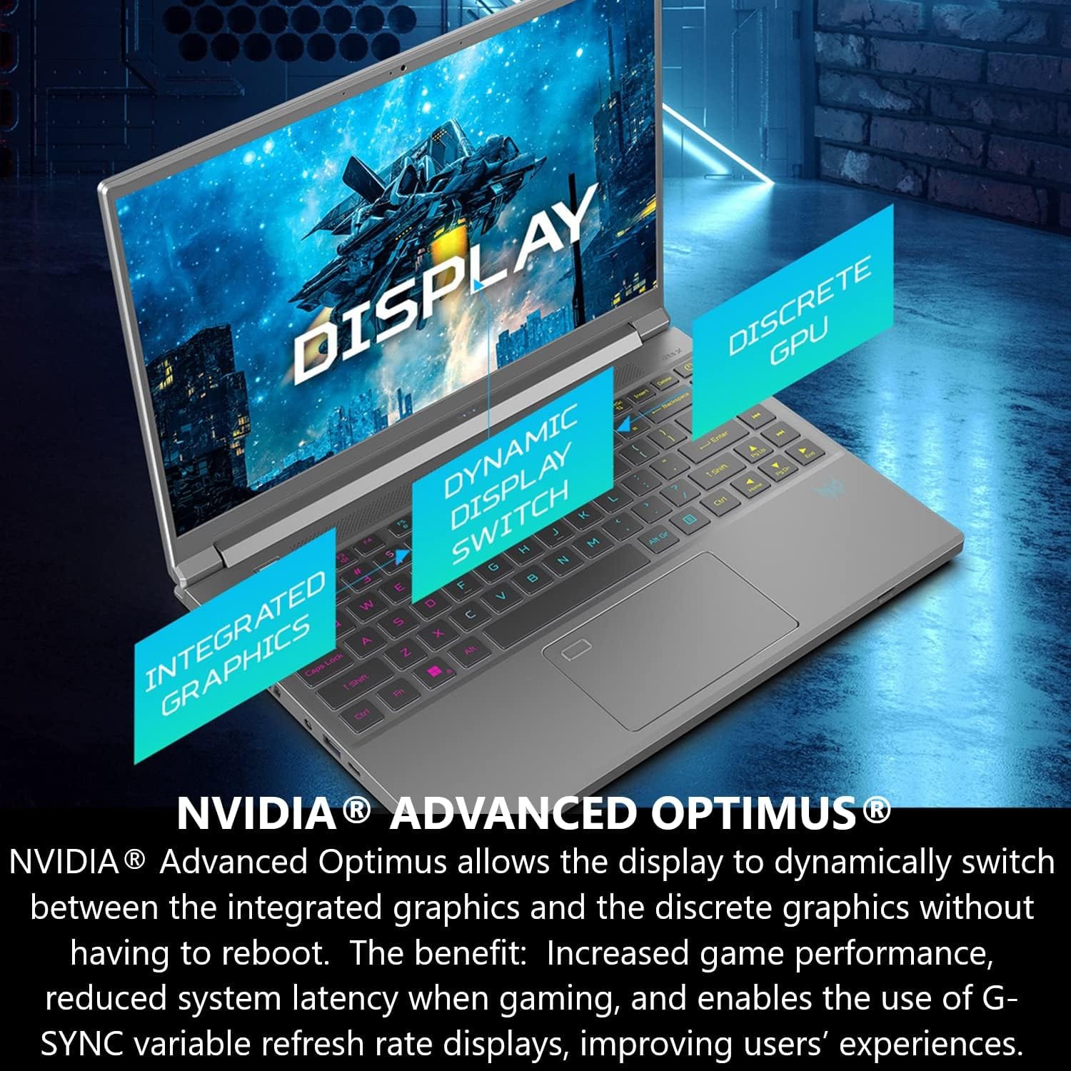 NVIDIA ADVANCED OPTIMUS – NVIDIA Advanced Optimus allows the display to dynamically switch between the integrated graphics and the discrete graphics without having to reboot.