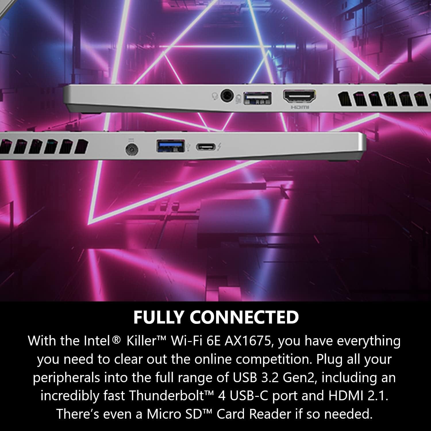 FULLY CONNECTED – With the Intel Killer Wi-Fi 6E AX1675, you have everything you need to clear out the online competition. Plug all your peripherals into the full range of USB 3.2 Gen2, including an incredibly fast Thunderbolt 4 USB-C port and HDMI 2.1. There’s even a Micro SD Card Reader if needed.